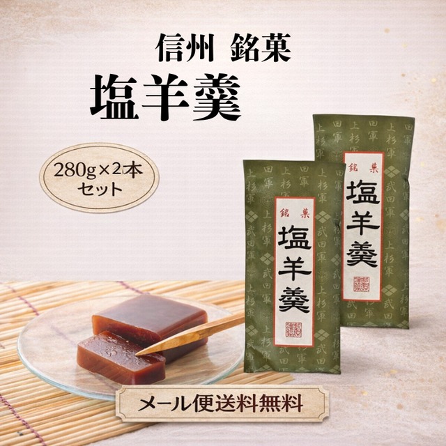 信州名物の銘菓の塩羊羹(280g 2本セット)をお届けいたします。 素材にこだわって作られた、風味豊かな逸品です。 塩羊羹は、伝統的な技法で製造され、素朴な味わいが特徴です。 口に入れると、ふんわりとした食感と塩味が広がり、口いっぱいにやさしい甘さが広がります。 ご家族やお友達と一緒に楽しめるお茶うけとして最適です。 心を落ち着かせ、特別なひとときを演出するひと品。ぜひ、贈り物やおもてなしにご利用ください。 賞味期限:発送日より2か月以上先の商品をお届けします。 ※保存方法:直射日光を避け、冷暗所に保存してください。開封後はお早めにお召し上がりください。 ※お届け方法:メール便にてお届けいたしますので、お受取りの際はポストをご確認ください。