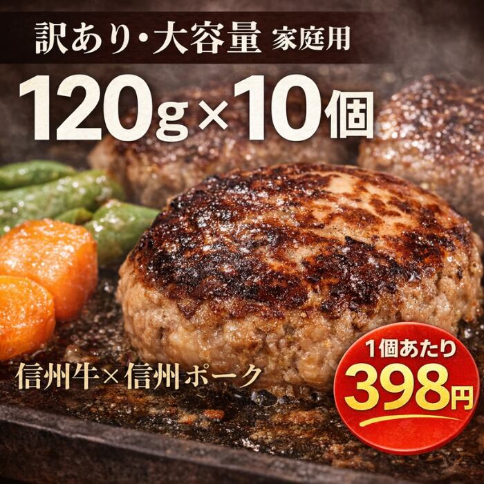 【まとめ買い 大容量・訳あり】信州牛×信州ポーク ハンバーグ120g×10個 冷凍 家庭用 ご自宅用 お弁当 ストックまとめ買い 冷凍食品 家計応援