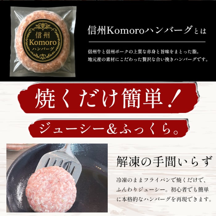 【送料無料】150g×10個 信州牛×信州ポーク 冷凍ハンバーグ Komoroハンバーグ お弁当 ストック アレンジ自在 長野県 小諸 国産 和牛 ストック ごちそう 冷凍食品 総菜