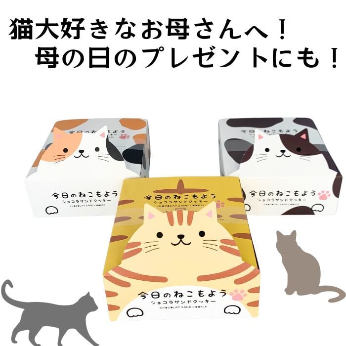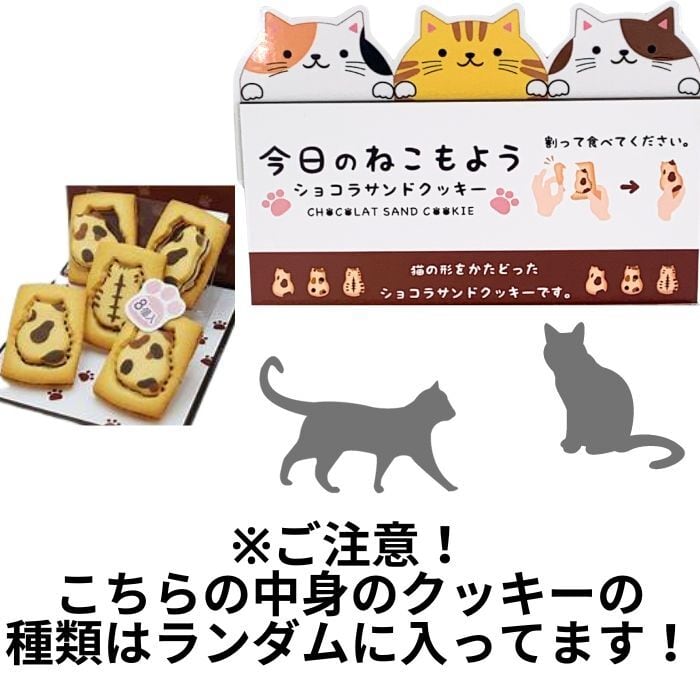 可愛らしい猫の形をしたショコラサンドクッキー『今日のねこもよう×8枚入り 3箱セット!』です!