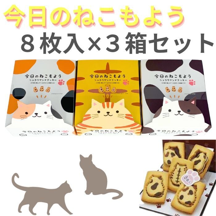 【送料無料】『今日のねこもよう×8枚入り 3箱セット!』 猫 プレゼント クッキー かわいい 猫好き ショコラサンドクッキー 焼菓子 型抜き SNS 映え 子供