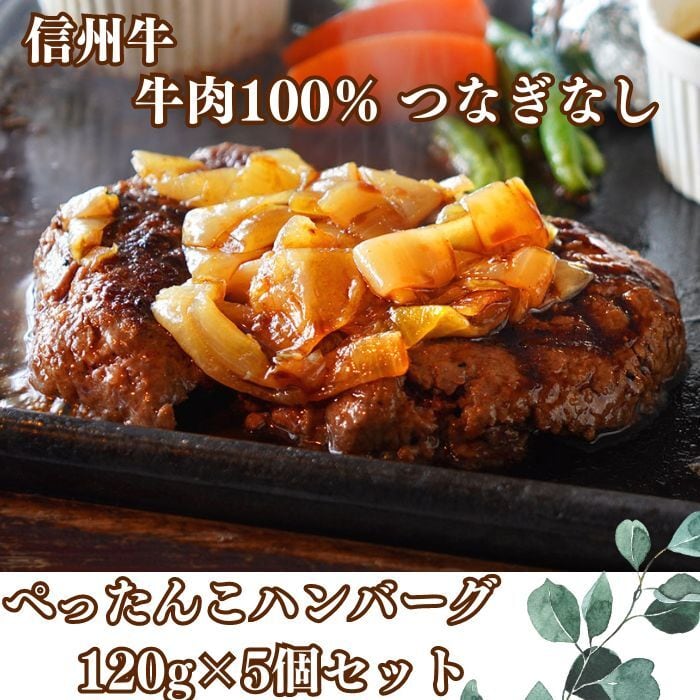 【送料無料】「冷凍クール便」 冷凍ハンバーグ 信州牛 つなぎなし 120g 5個セット Hishiya海賊船 レストラン